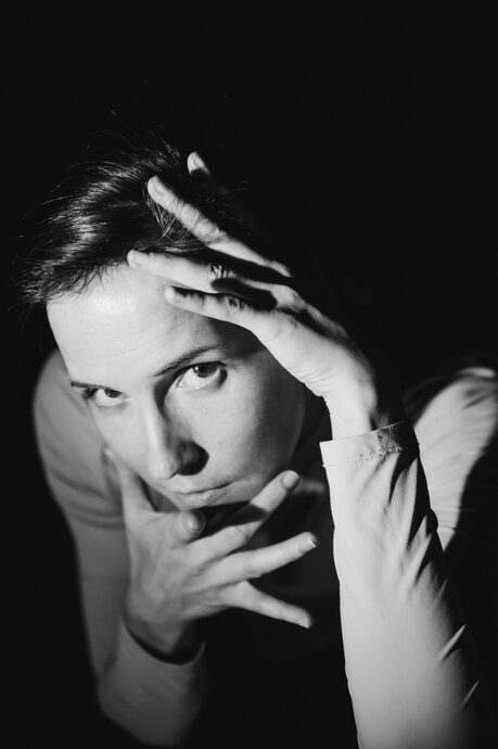 Часто то, что воспринимается падением, это, на самом деле, прыжок. В этом спектакле главный фокус направлен на инородность ощущений в механике сегодняшней жизни персонажей пьесы «Гроза» Островского, — ощущений в форму, и формы в ощущения. Любая группа жива, пока эти переходы существуют. Но здесь механика поглощает чувства, зажимает игру и удовольствие. Как только связь с ощущениями прерывается, механика действия имеет очень маленький инерционный путь, и процессы останавливаются.