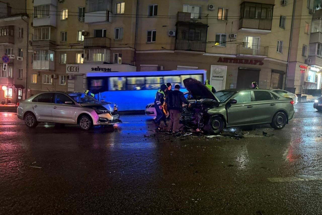 В центре Воронежа столкнулись две иномарки — пострадали три человекаПострадавших увезли в больницу