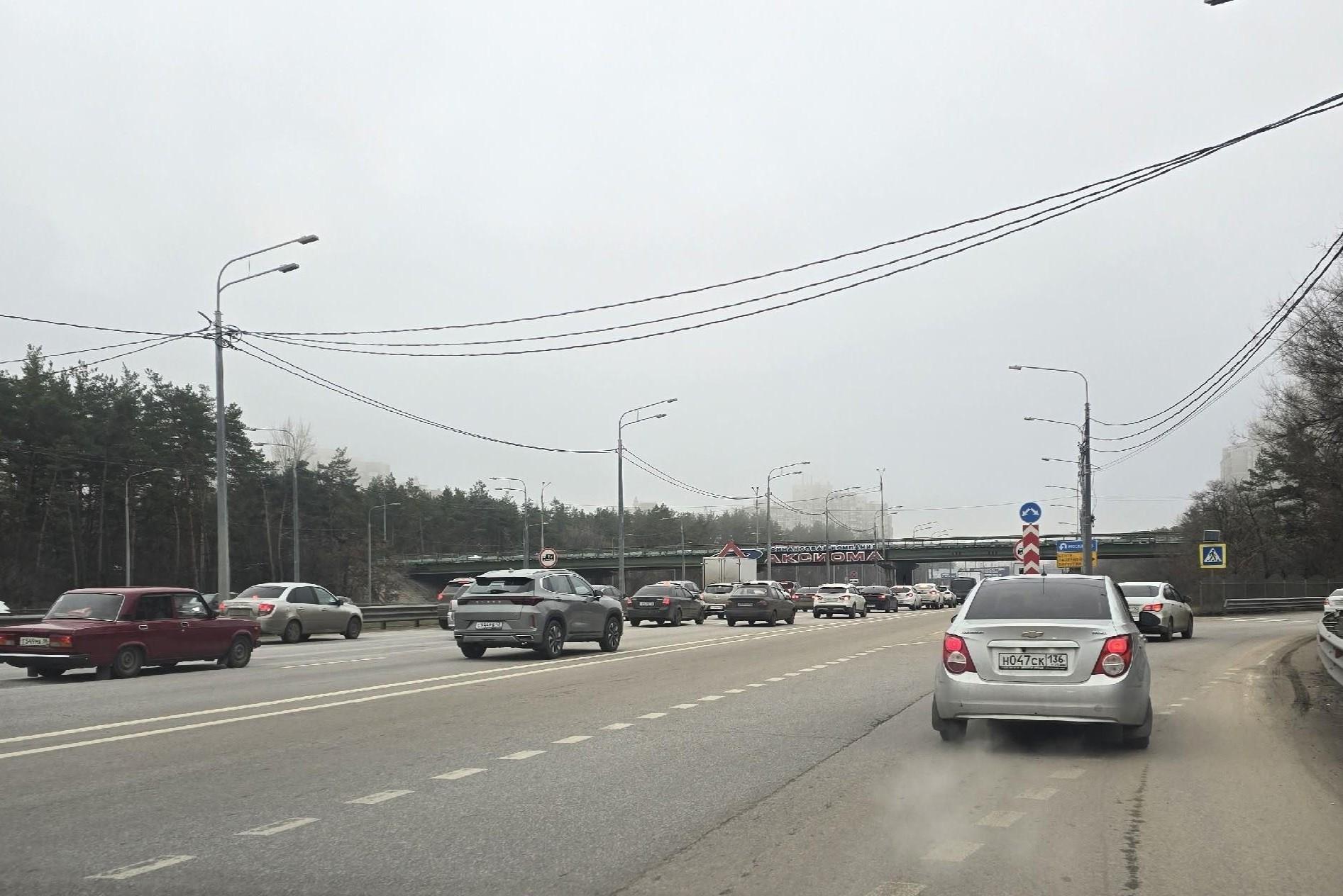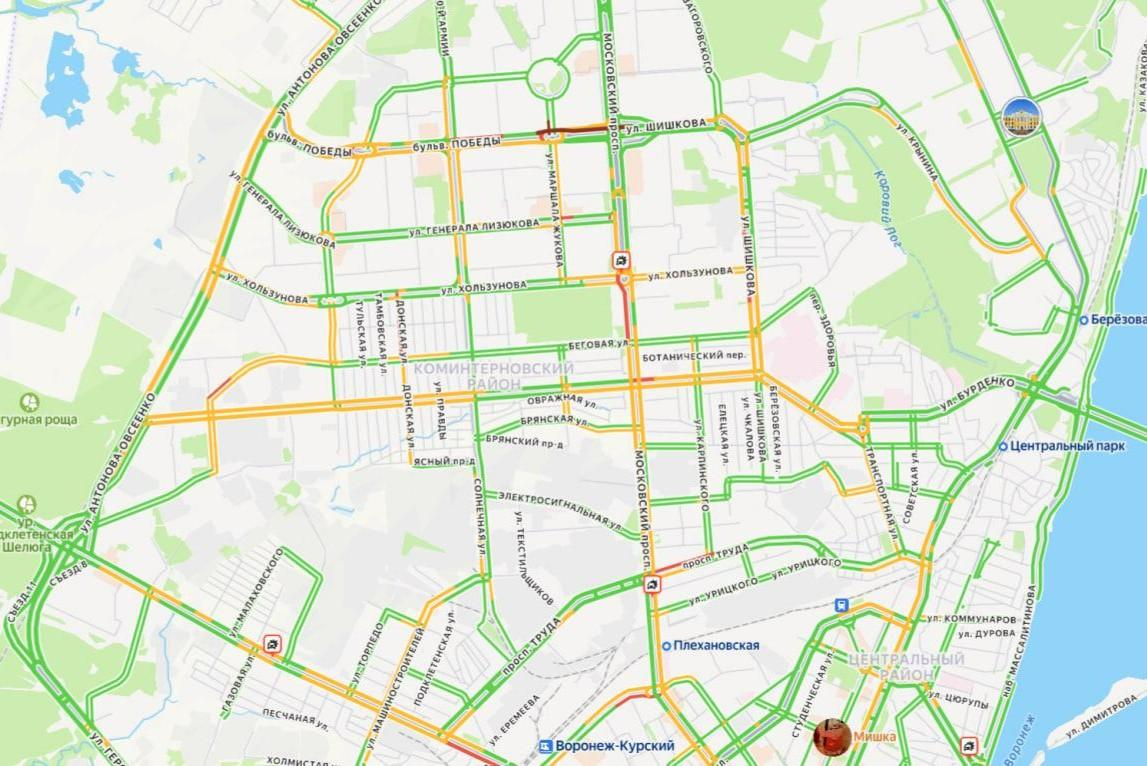 На Московском проспекте в Воронеже образовалась пробка из-за ДТППробки оцениваются в три балла