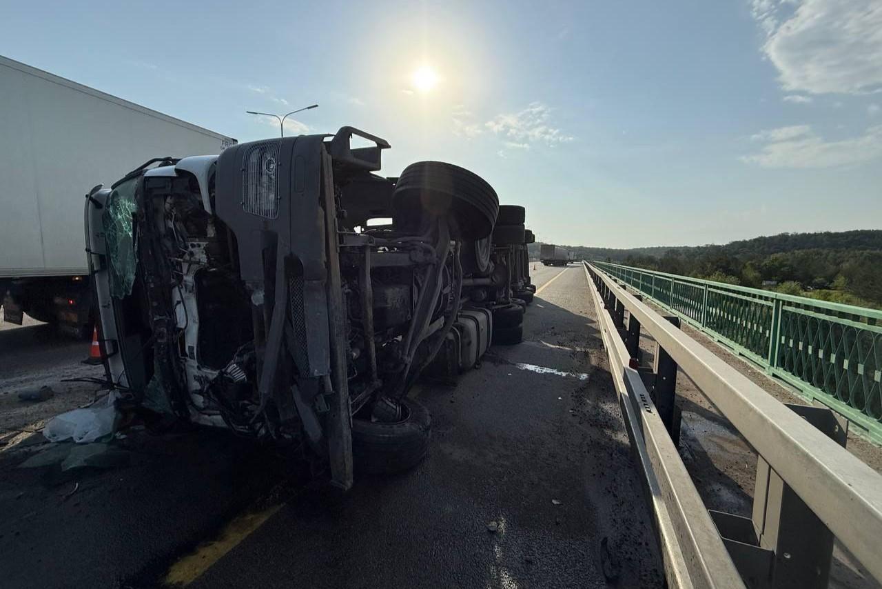 На выезде из Воронежа перевернулась фура — там образовалась многокилометровая пробкаВодитель попал в больницу