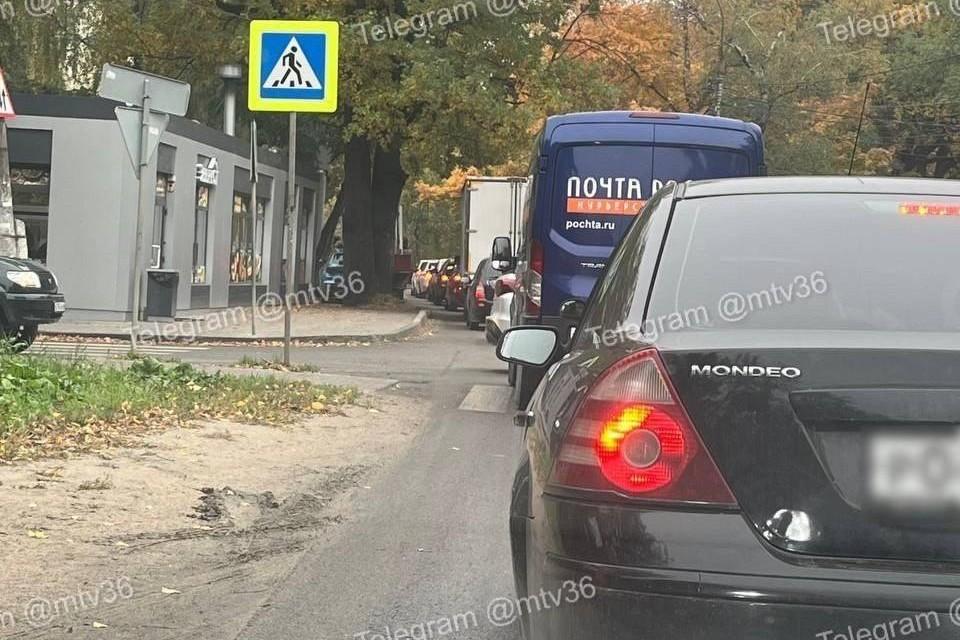 Воронежцы попали в длинную пробку на улице 20-летия ОктябряСейчас там можно проехать лишь по одной полосе в каждом направлении